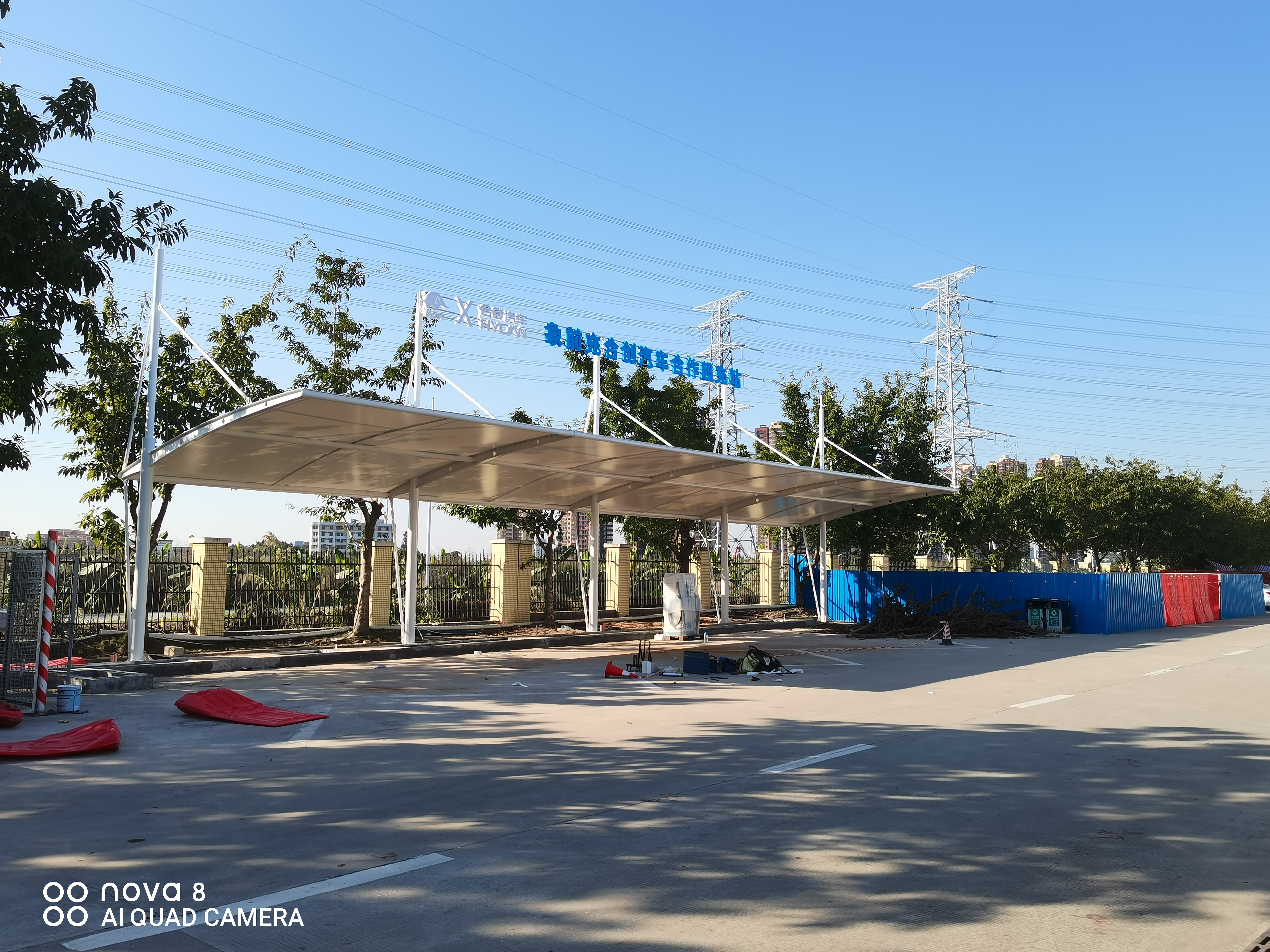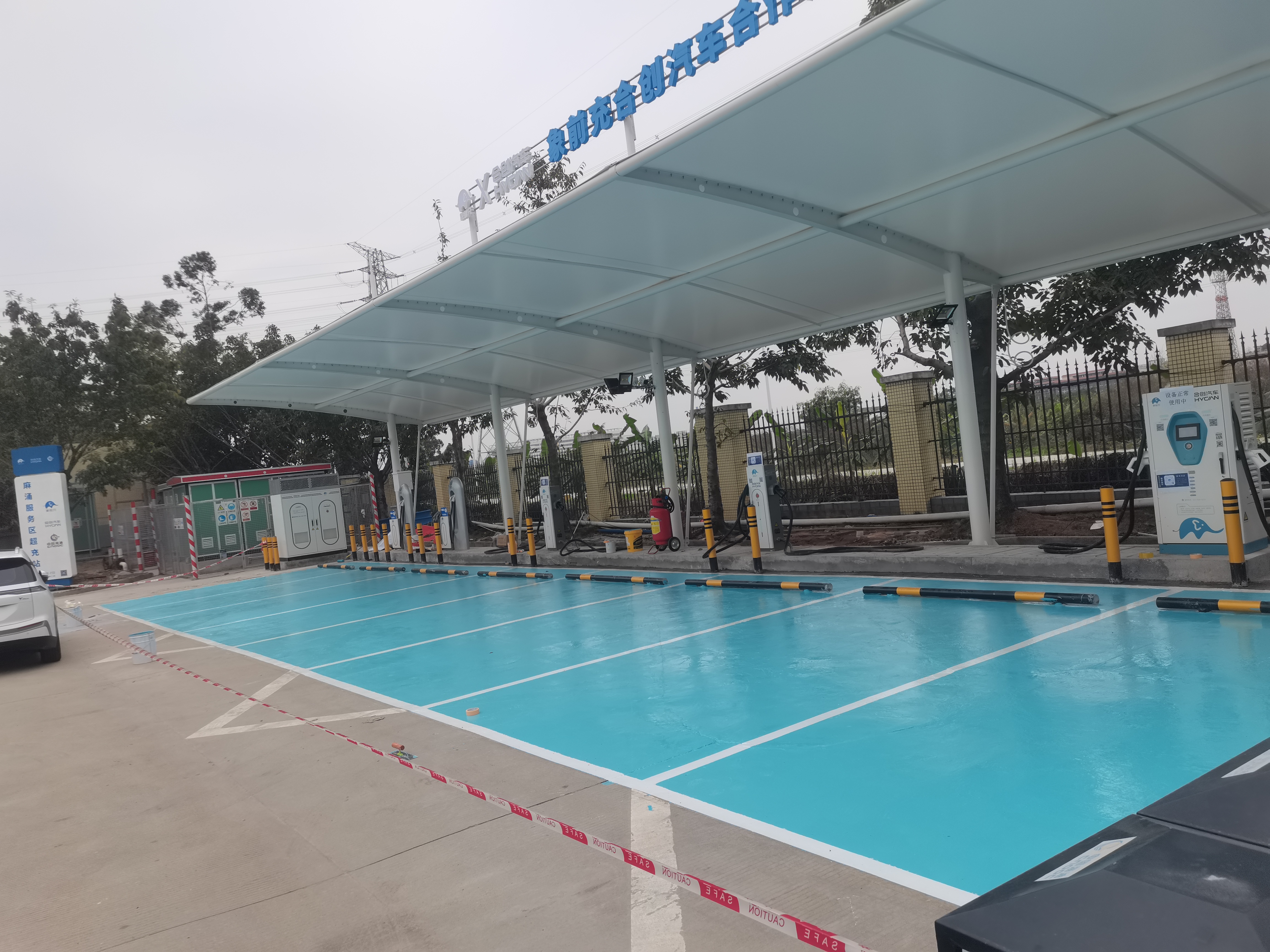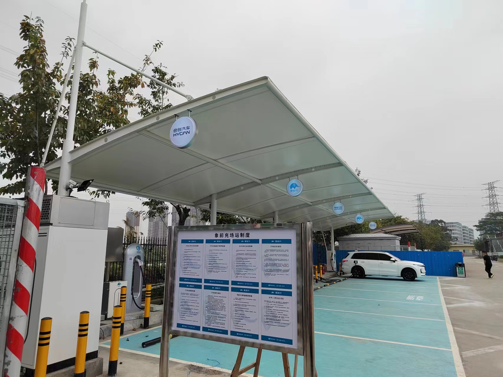 象前充新能源充電站項(xiàng)目位于廣東沿江高速深圳方向,鋼結(jié)構(gòu)為圓形立柱加變截面工字鋼結(jié)構(gòu),雨棚采用PVDF膜結(jié)構(gòu)。案例如下: