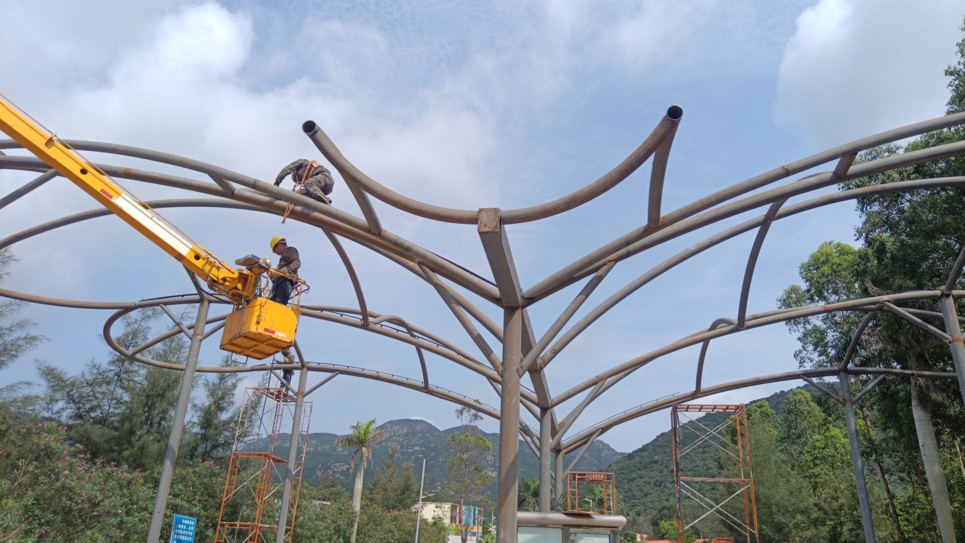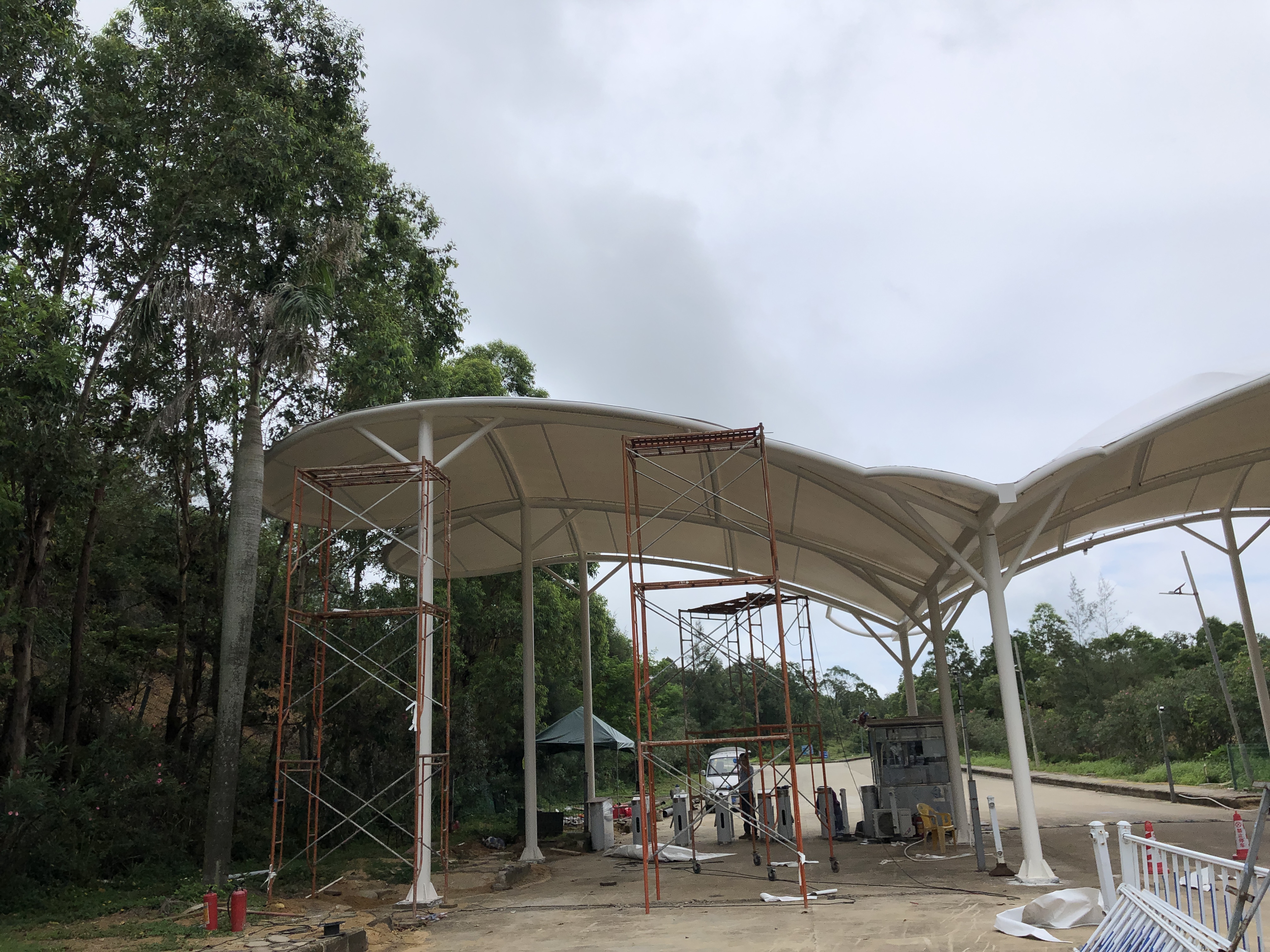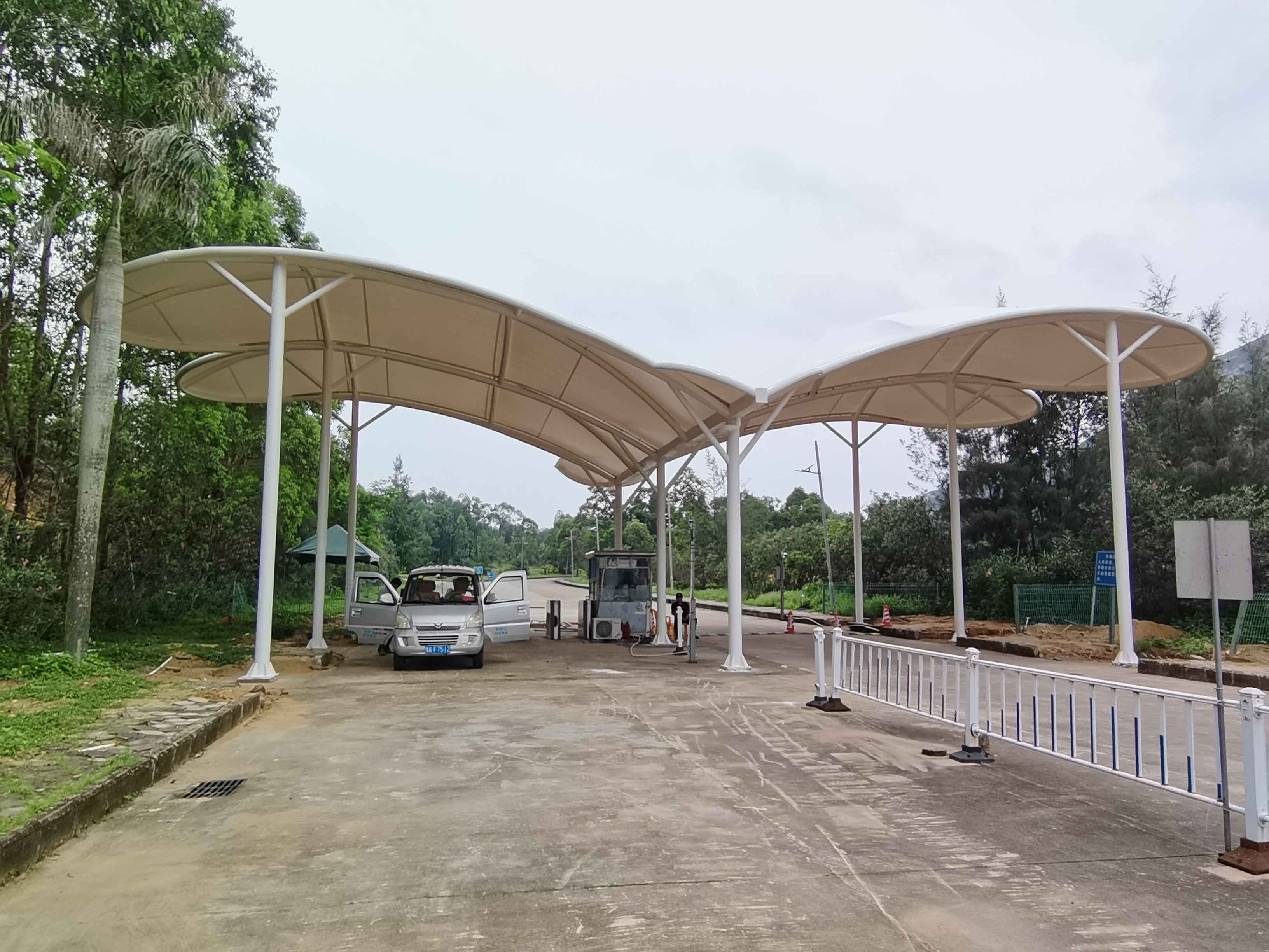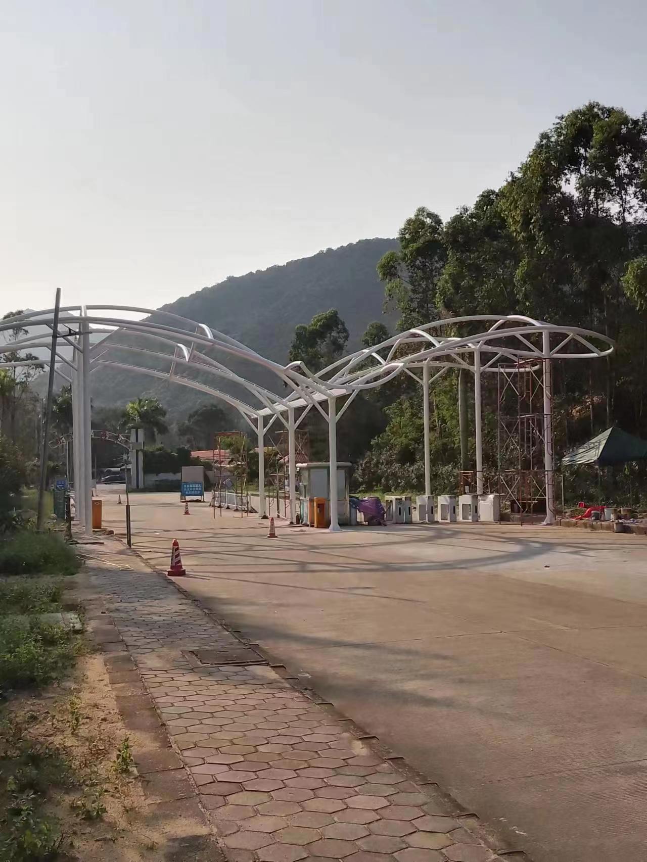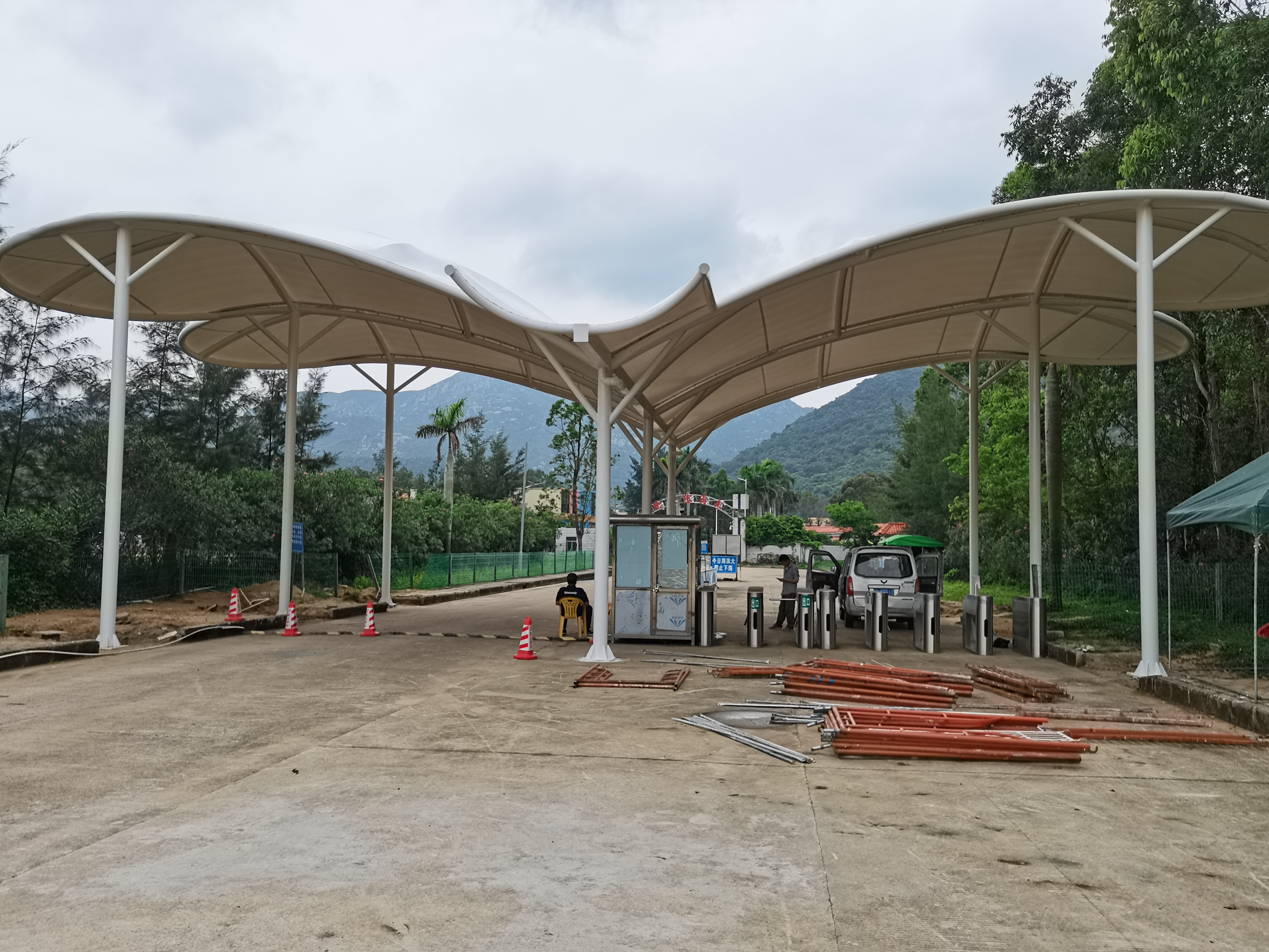 飛沙灘景區位于珠海市金灣區762縣道,景區大門口采用蝴蝶造型的膜結構雨棚,案例如下: